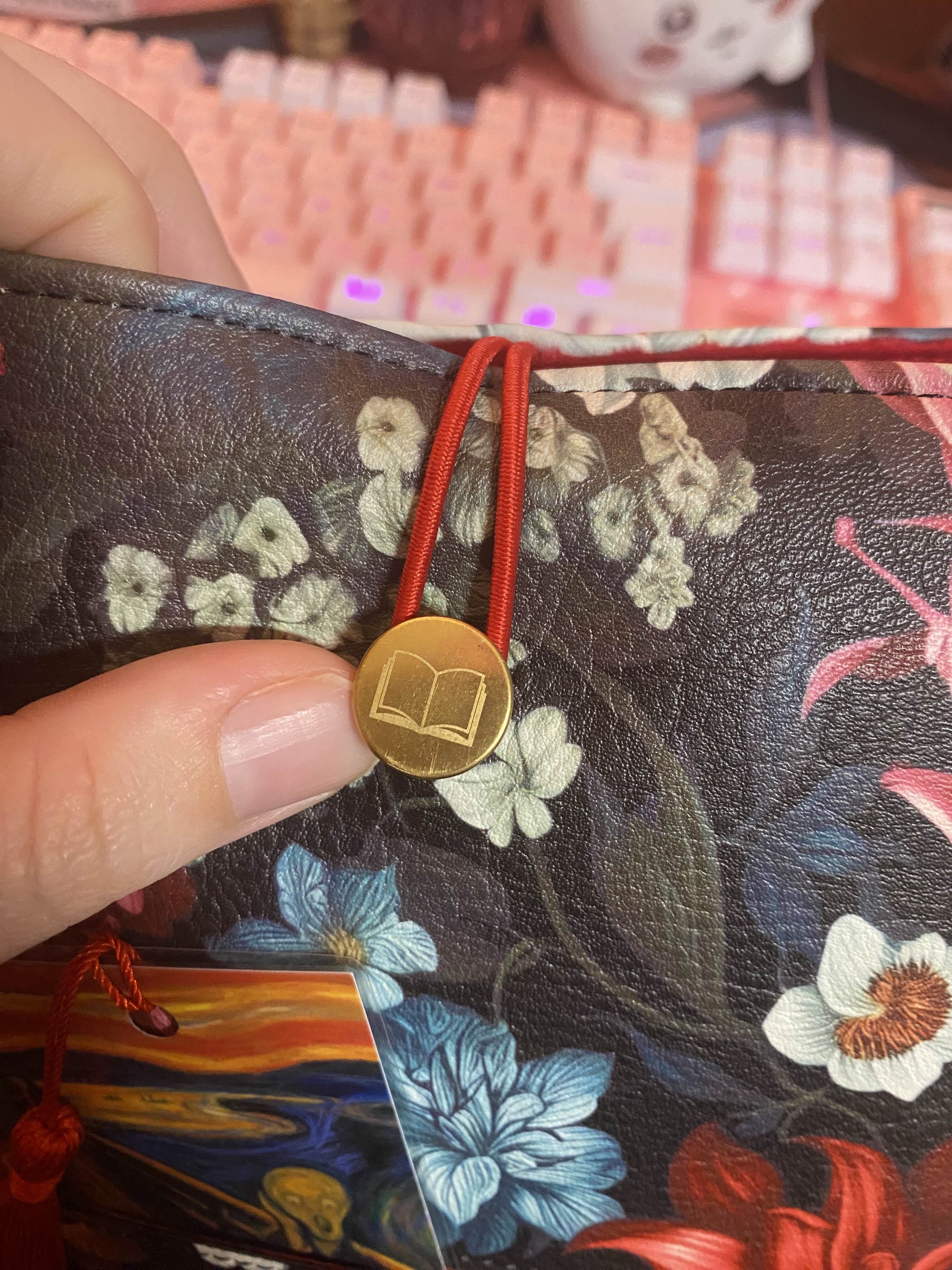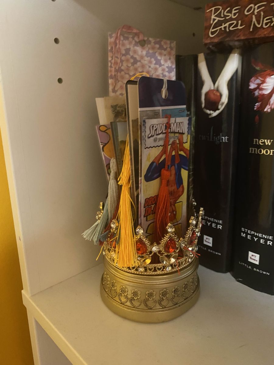 I got this really nice crown-shaped cup for my bookmarks, along with an absolutely gorgeous Bookaroo book pouch. The idea totally came from Bible cases, but basically it's a really nice protective pouch so I can carry around my nice books without getting them all fucked up from being in my bag full of stuff.